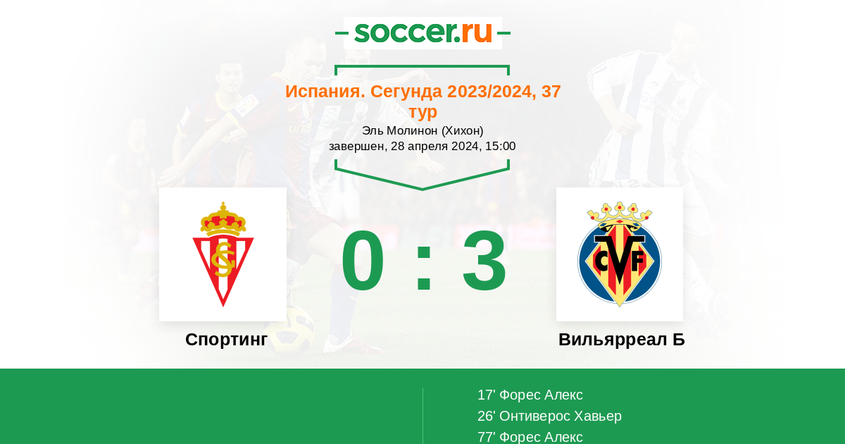 Спортинг - Вильярреал Б: обзор матча 28 апреля 2024