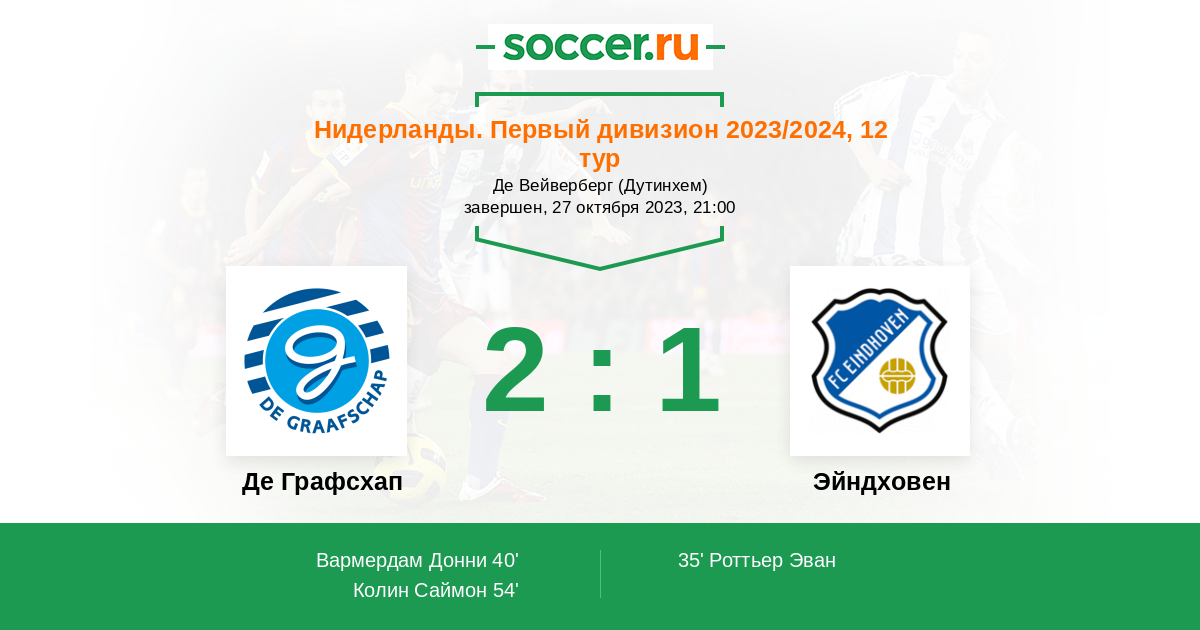 Де Графсхап - Эйндховен: обзор матча 27 октября 2023