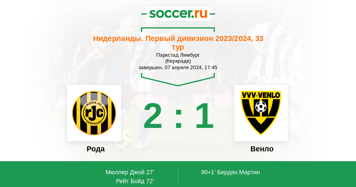Рода - Венло: обзор матча 7 апреля 2024