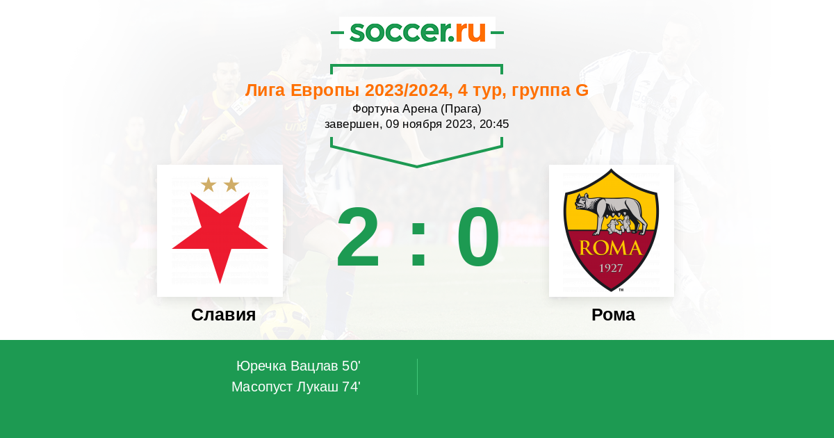 Славия - Рома: обзор матча 9 ноября 2023