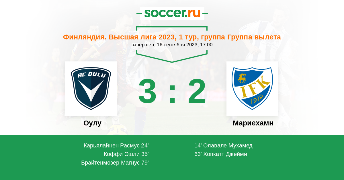 Оулу - Мариехамн: обзор матча 16 сентября 2023
