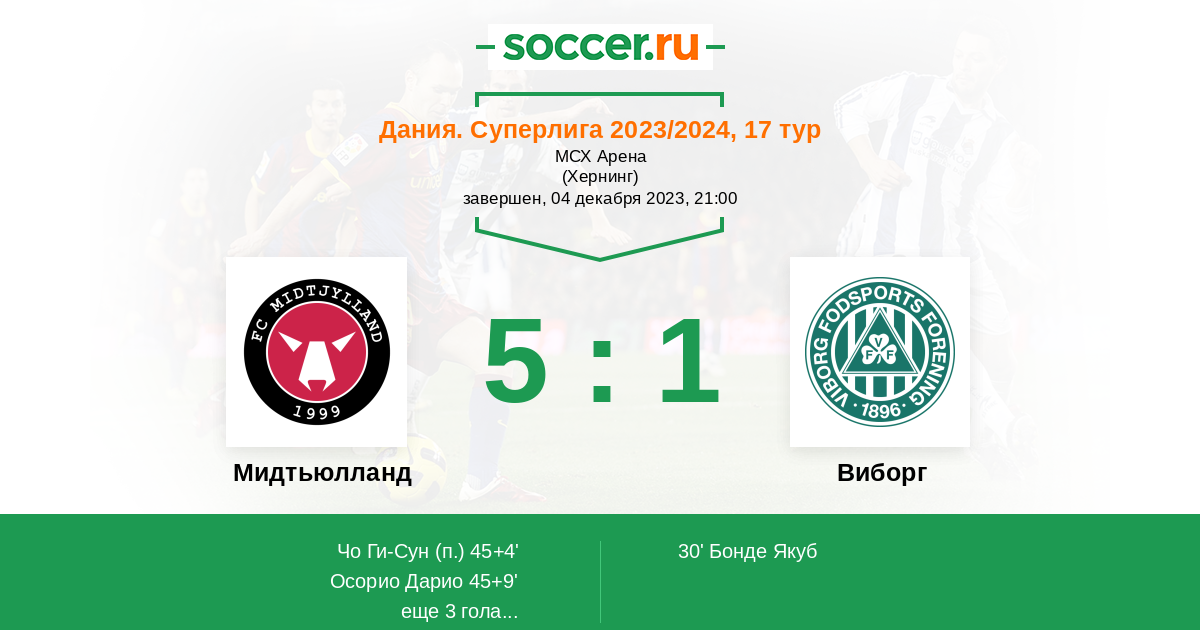 Мидтьюлланд - Виборг: обзор матча 4 декабря 2023