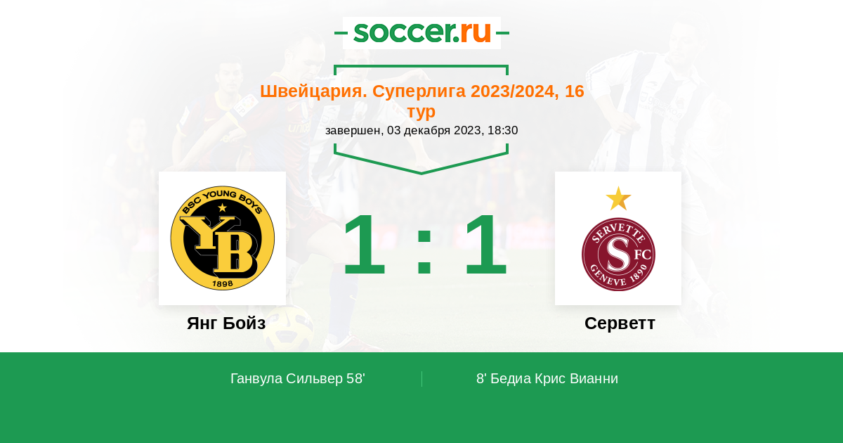 Янг Бойз - Серветт: обзор матча 3 декабря 2023