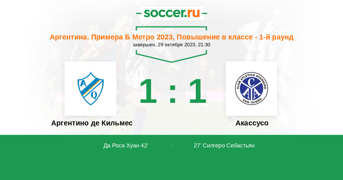Аргентино де Кильмес - Акассусо: обзор матча 29 октября 2023