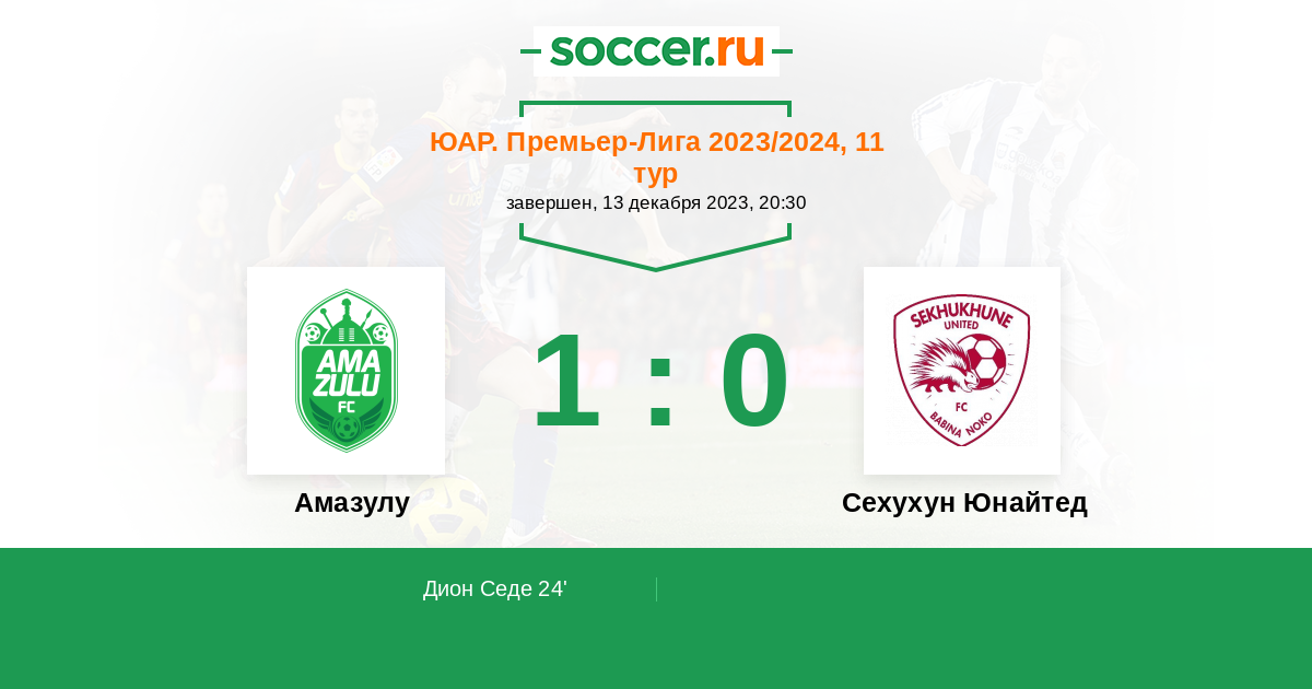 | 11. | Амазулу | 30 | 8 | 12 | 10 | 12 | 24:30 | 36 |