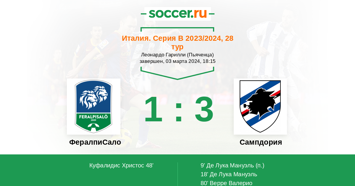 ФералпиСало - Сампдория: обзор матча 3 марта 2024