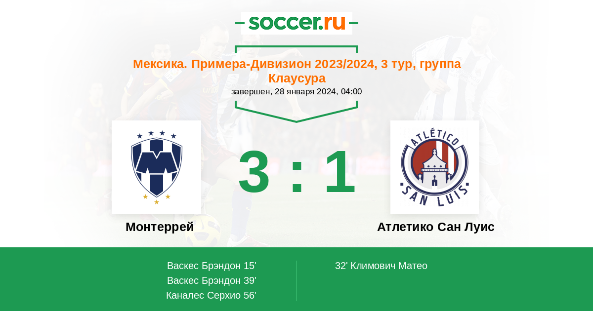 Монтеррей | 17 | 9 | 5 | 3 | 5 | 32:19 | 32 |