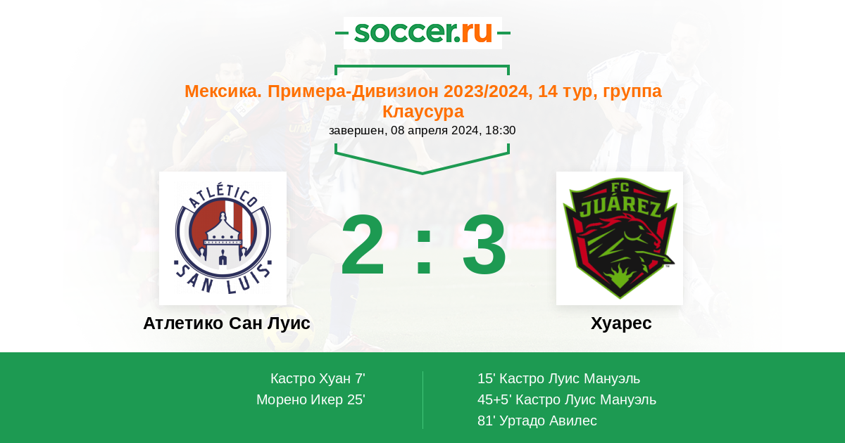 Атлетико Сан Луис - Хуарес: обзор матча 8 апреля 2024