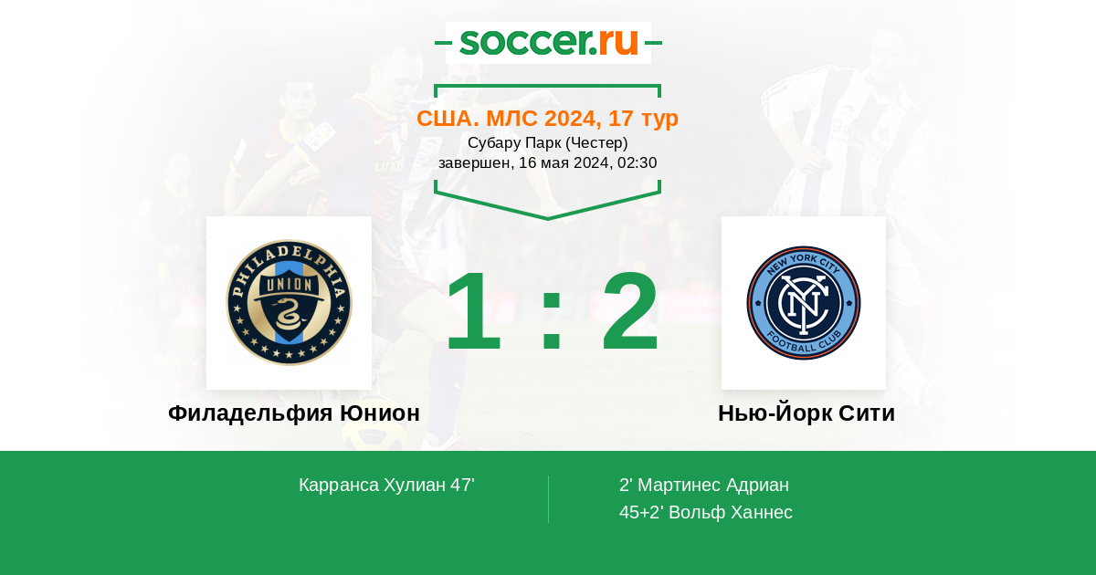 Филадельфия Юнион - Нью-Йорк Сити: обзор матча 16 мая 2024