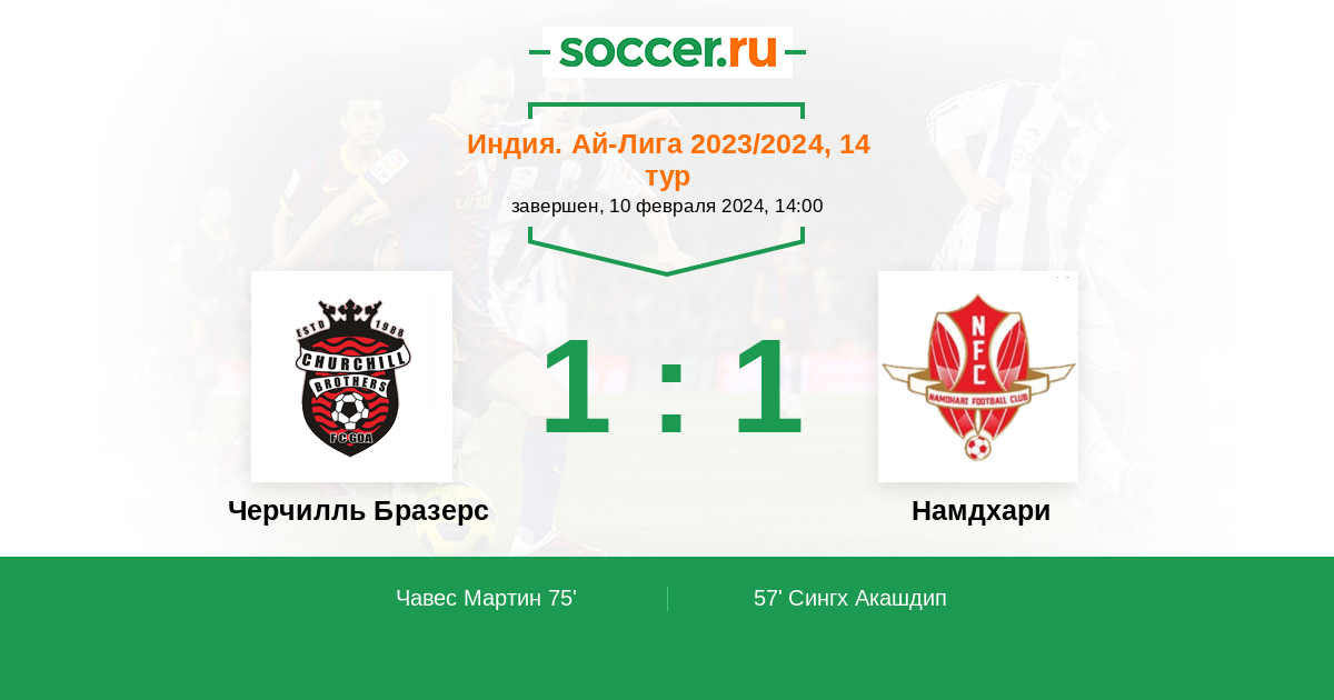 Черчилль Бразерс - Намдхари: обзор матча 10 февраля 2024