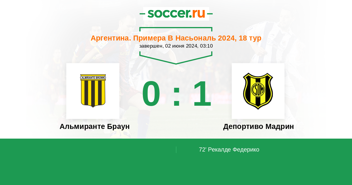 Альмиранте Браун - Депортиво Мадрин: обзор матча 2 июня 2024