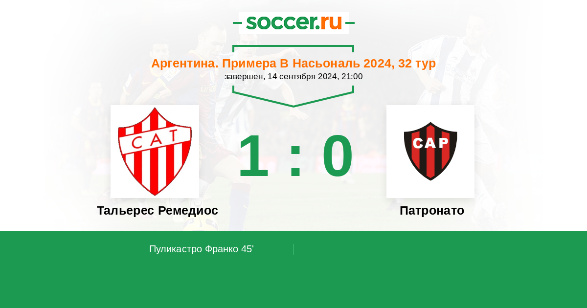 Тальерес Ремедиос - Патронато: обзор матча 14 сентября 2024