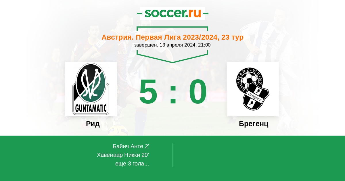 Рид - Брегенц: обзор матча 13 апреля 2024