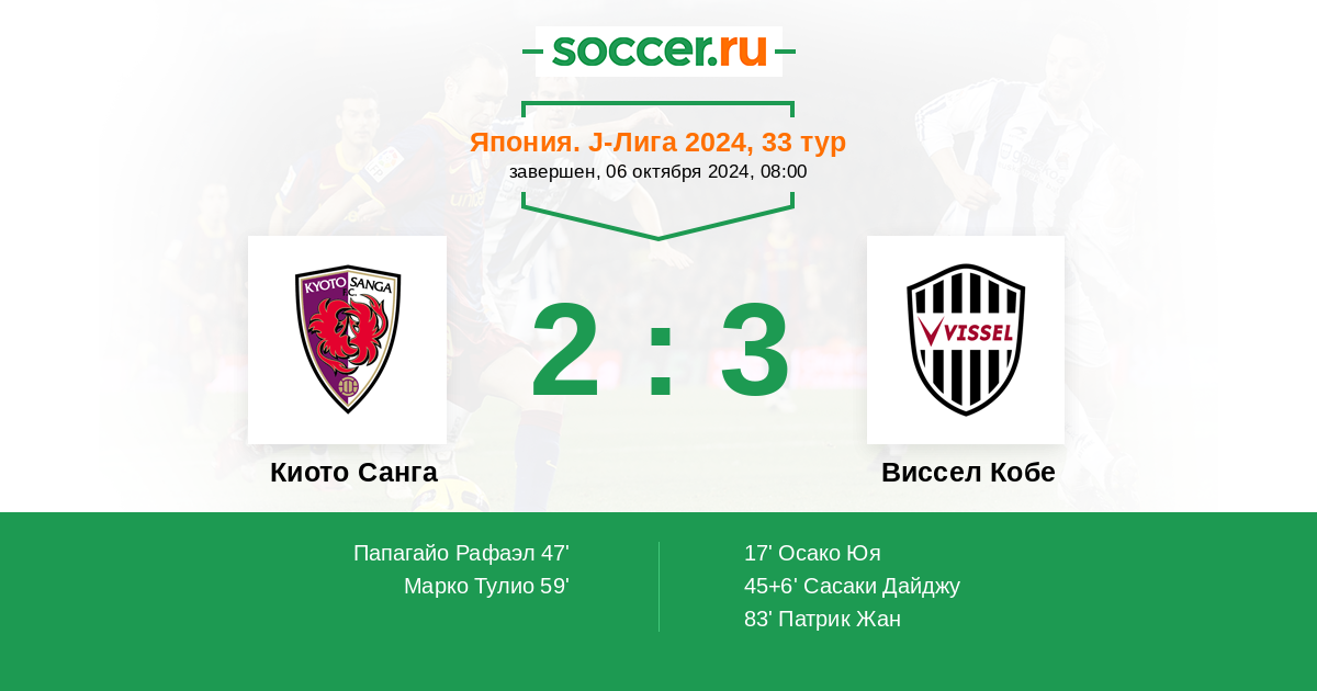 Киото Санга - Виссел Кобе: обзор матча 6 октября 2024