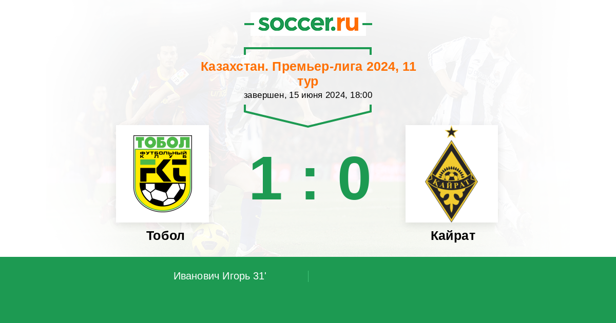 Тобол - Кайрат: обзор матча 15 июня 2024