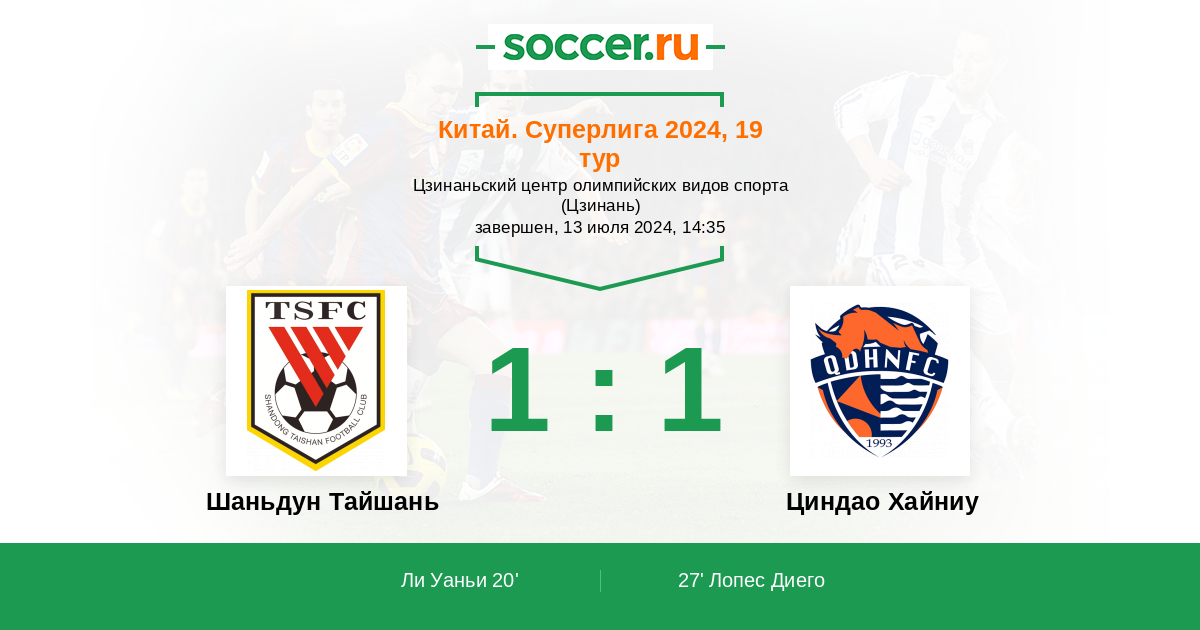 Шаньдун Тайшань - Циндао Хайниу: обзор матча 13 июля 2024