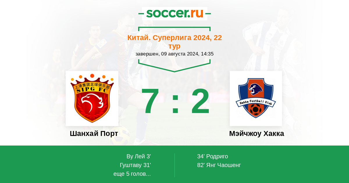 Шанхай Порт - Мэйчжоу Хакка: обзор матча 9 августа 2024