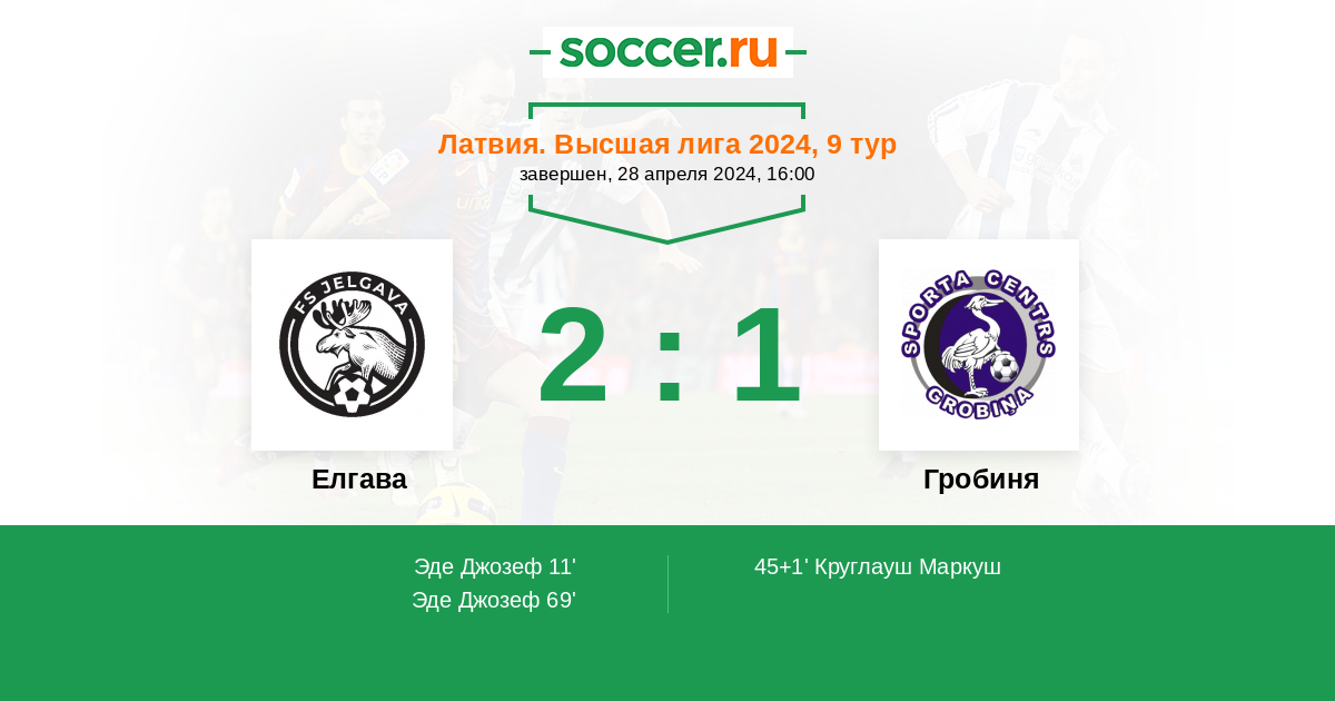 Елгава - Гробиня: обзор матча 28 апреля 2024