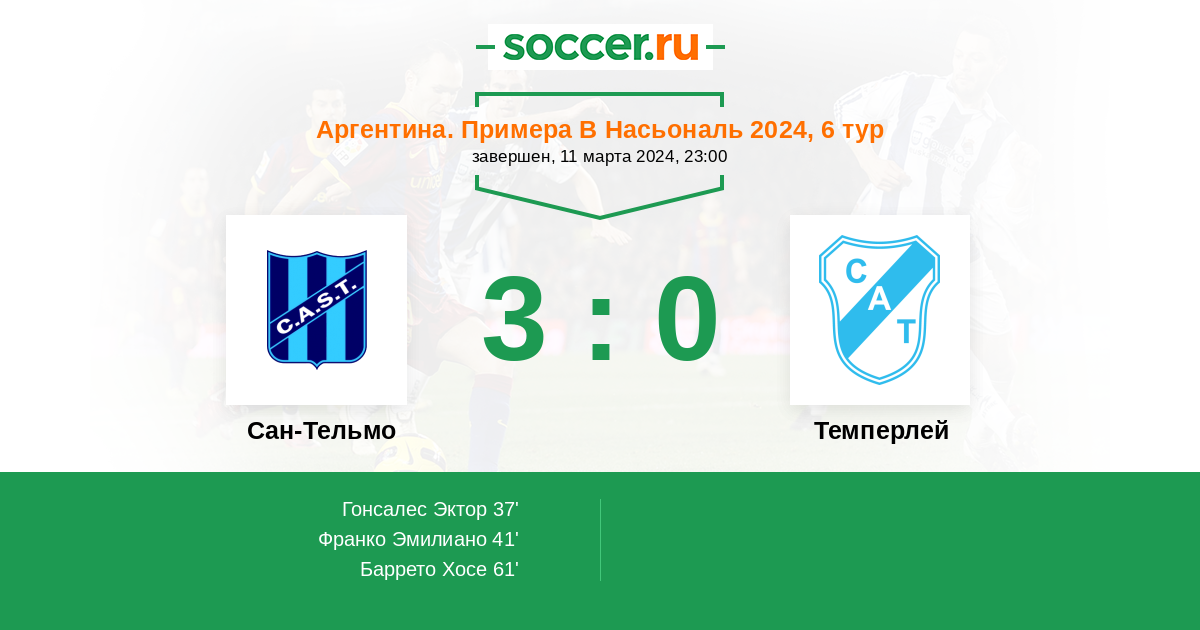 Сан-Тельмо - Темперлей: обзор матча 11 марта 2024