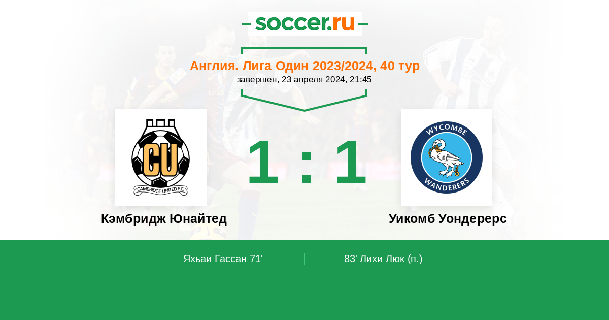 Кэмбридж Юнайтед - Уикомб Уондерерс: обзор матча 23 апреля 2024