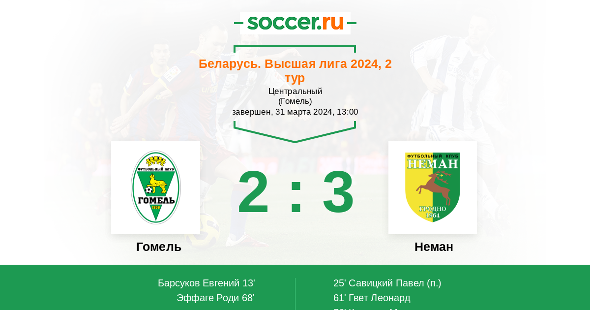 Гомель - Неман: обзор матча 31 марта 2024