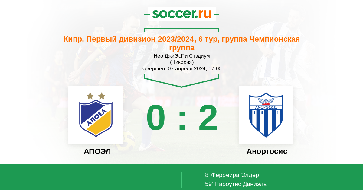 АПОЭЛ - Анортосис: обзор матча 7 апреля 2024