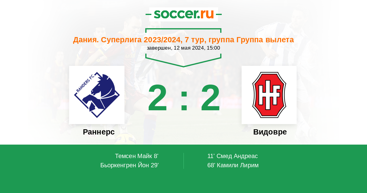 Раннерс - Видовре: обзор матча 12 мая 2024