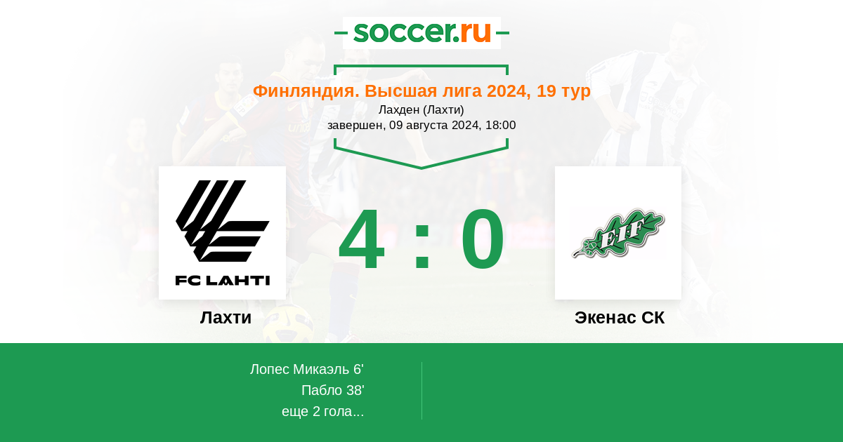Лахти - Экенас СК: обзор матча 9 августа 2024