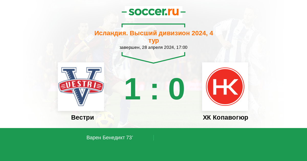 Вестри - ХК Копавогюр: обзор матча 28 апреля 2024