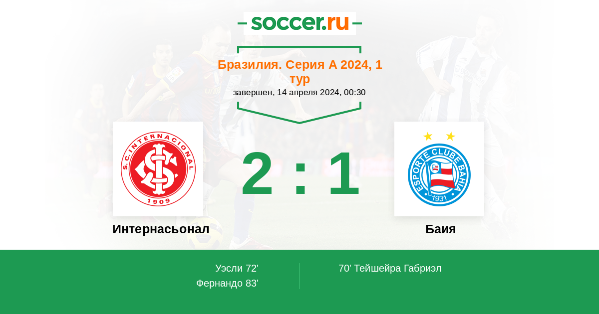 Интернасьонал - Баия: обзор матча 14 апреля 2024
