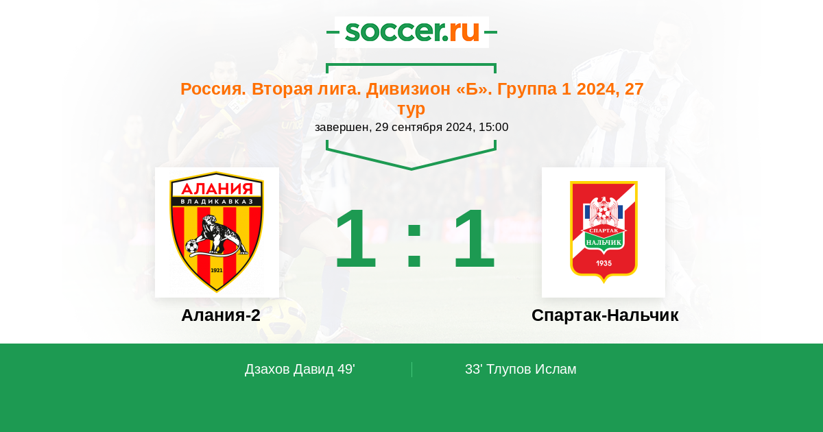 Алания-2 - Спартак-Нальчик: обзор матча 29 сентября 2024