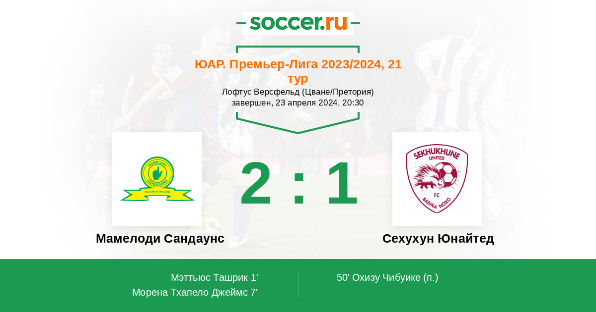 Мамелоди Сандаунс | 30 | 22 | 7 | 1 | 20 | 52:11 | 73 |