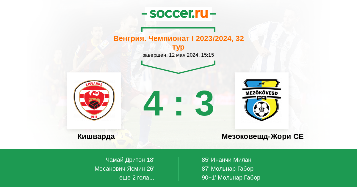 Кишварда - Мезоковешд-Жори СЕ: обзор матча 12 мая 2024