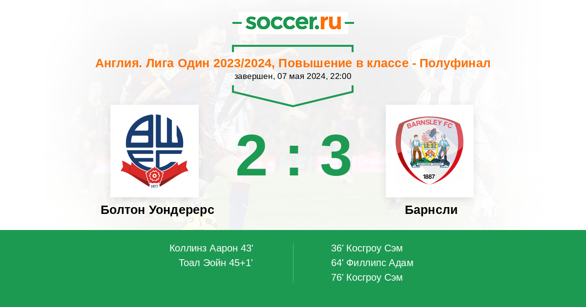 Болтон Уондерерс - Барнсли: обзор матча 7 мая 2024