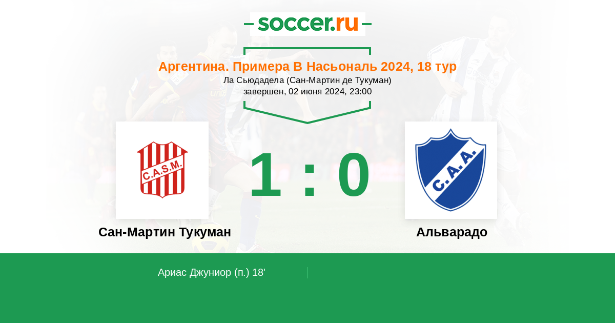 Сан-Мартин Тукуман - Альварадо: обзор матча 2 июня 2024
