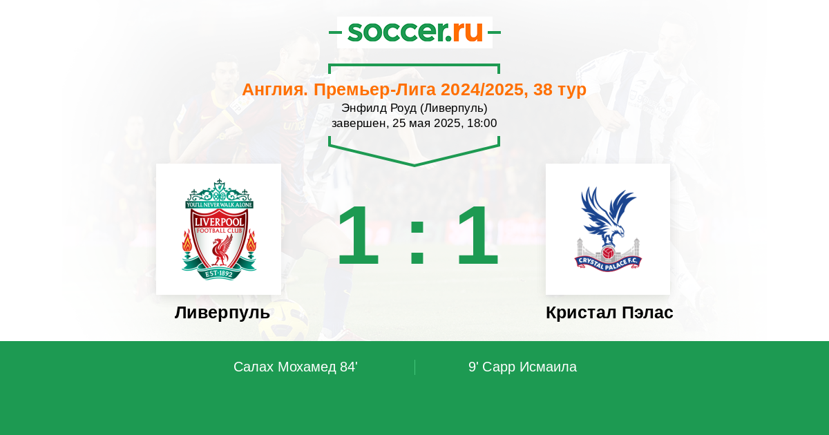 Ливерпуль - Кристал Пэлас: обзор матча 25 мая 2025