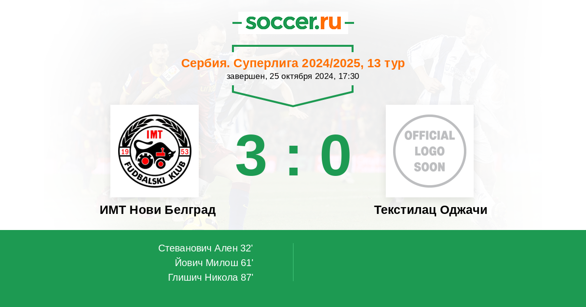 | И | В | Н | П | С | Мячи | О | ||