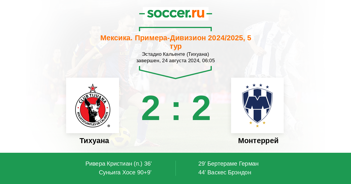 Тихуана - Монтеррей: обзор матча 24 августа 2024
