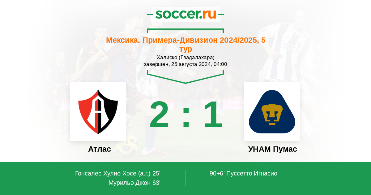 Атлас - УНАМ Пумас: обзор матча 25 августа 2024
