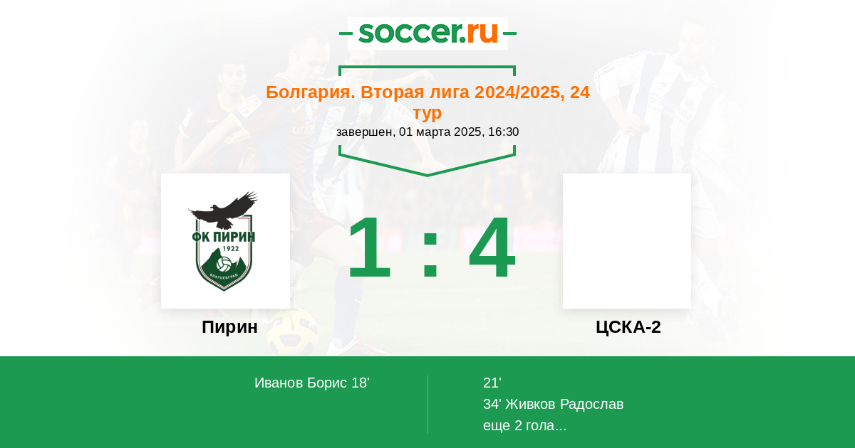 Пирин - ЦСКА-2: обзор матча 1 марта 2025