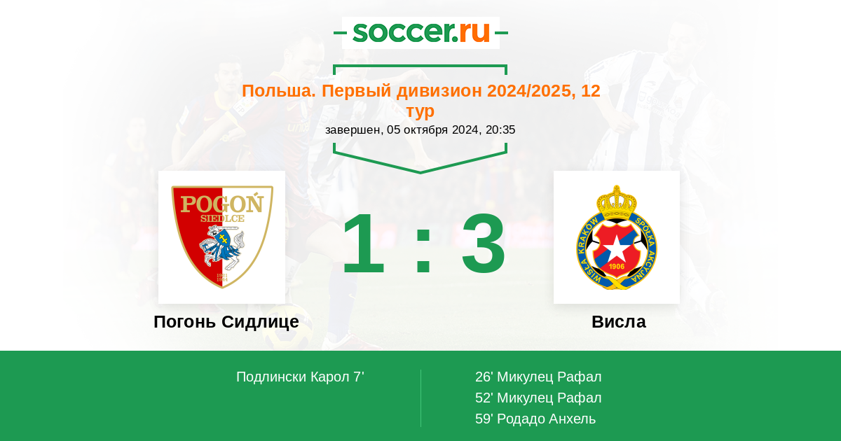 | 2. | Висла Пл | 17 | 11 | 4 | 2 | 6 | 34:17 | 37 |