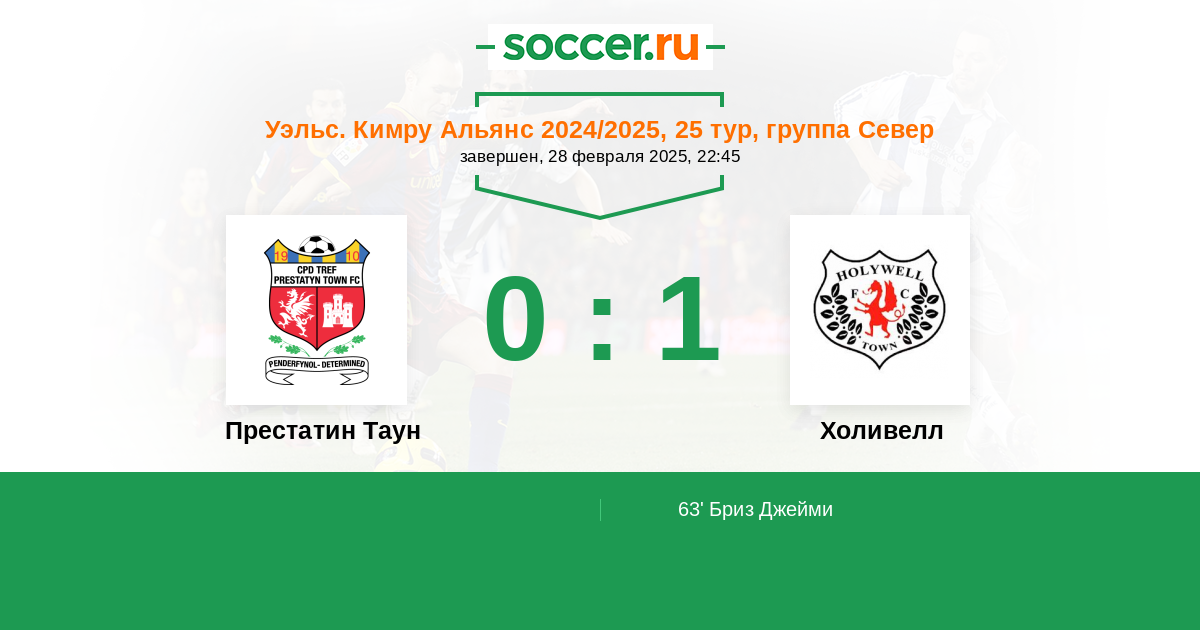 Престатин Таун - Холивелл: обзор матча 28 февраля 2025