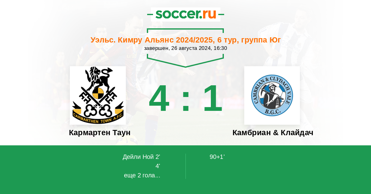 * - Камбриан & Клайдач: -3 очки (Решение федерации)