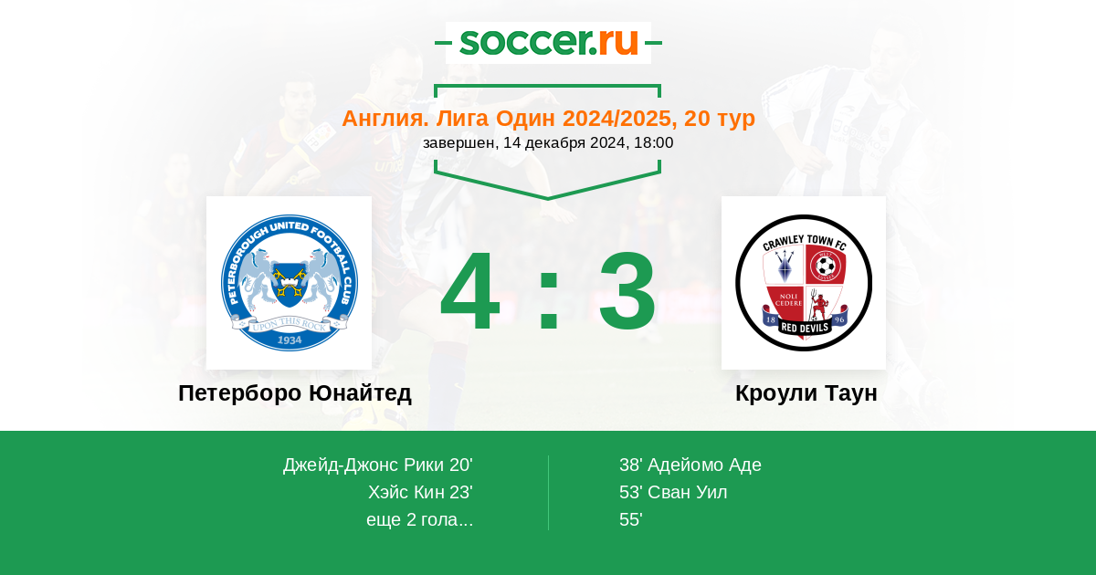 Петерборо Юнайтед - Кроули Таун: обзор матча 14 декабря 2024