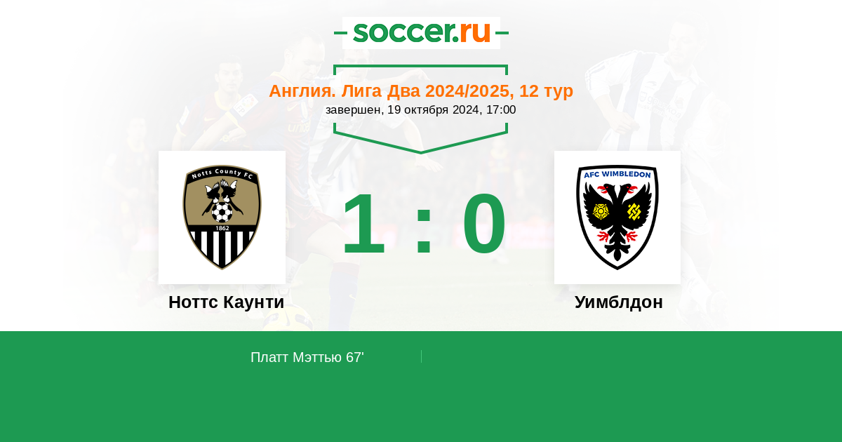 Ноттс Каунти - Уимблдон: обзор матча 19 октября 2024