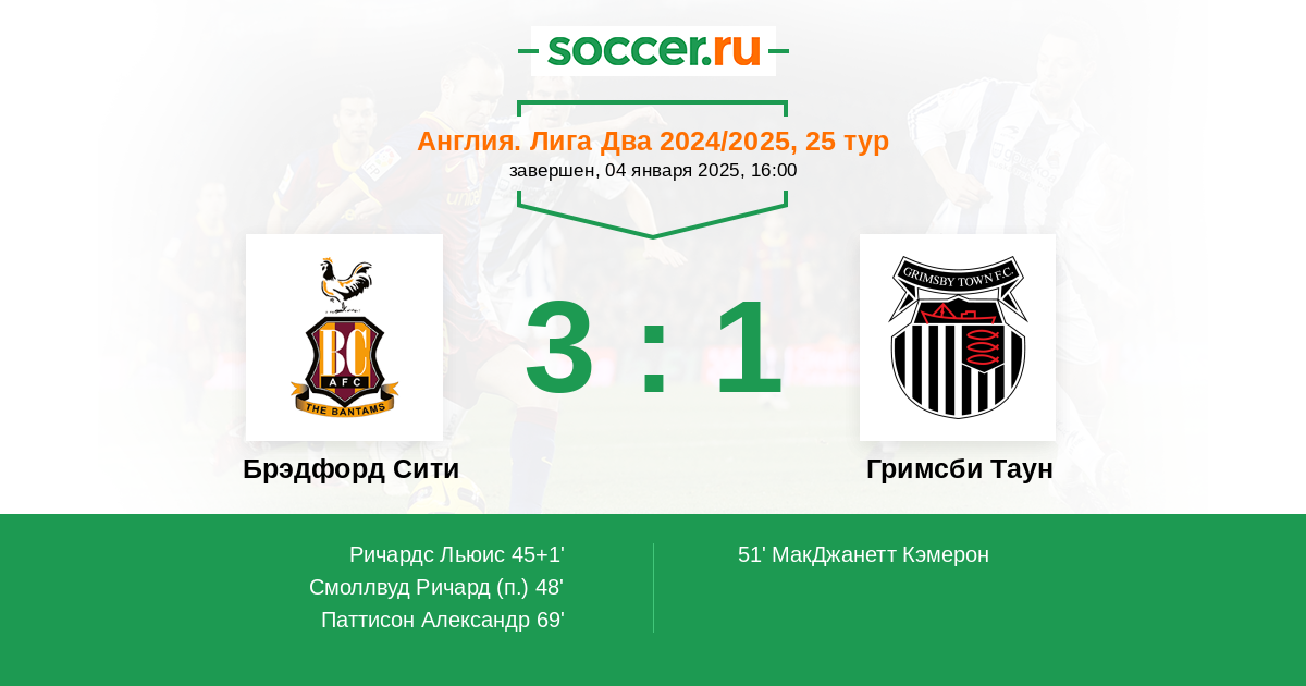 Брэдфорд Сити - Гримсби Таун: обзор матча 4 января 2025