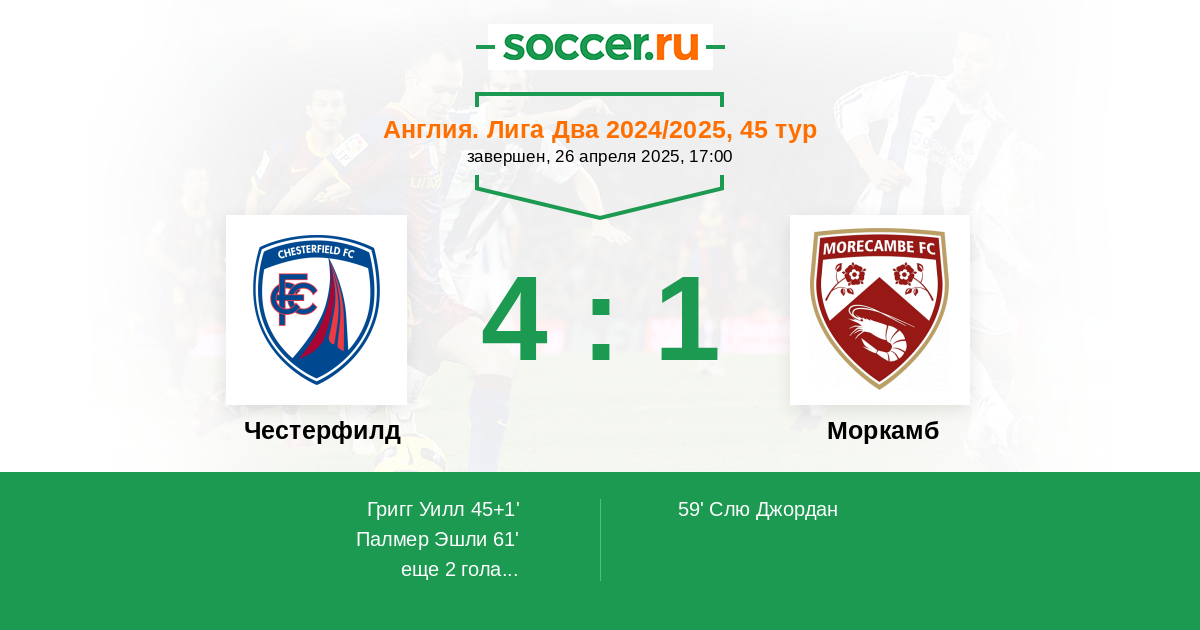 Честерфилд - Моркамб: обзор матча 26 апреля 2025