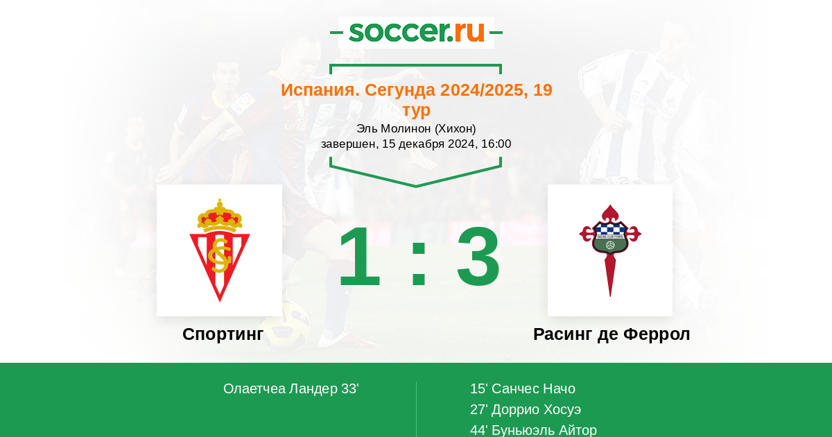 Спортинг - Расинг де Феррол: обзор матча 15 декабря 2024