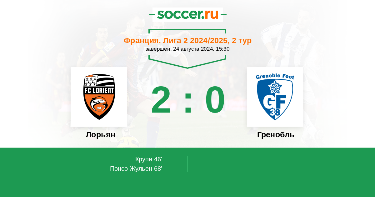 Лорьян - Гренобль: обзор матча 24 августа 2024