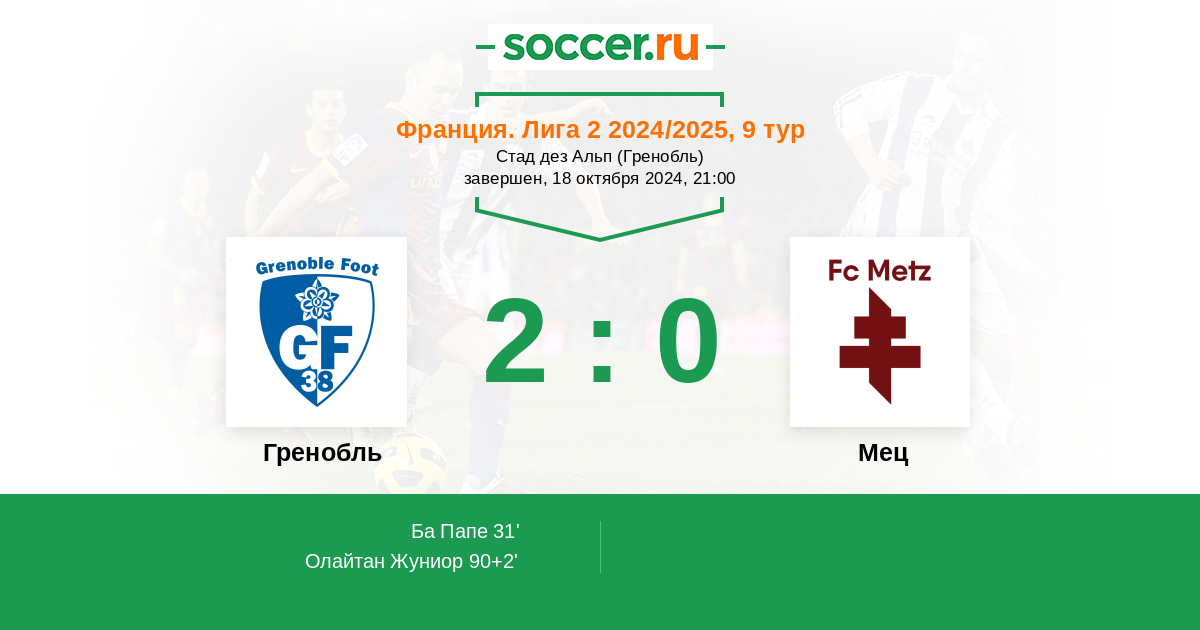 Мец | 34 | 18 | 11 | 5 | 10 | 64:34 | 65 |